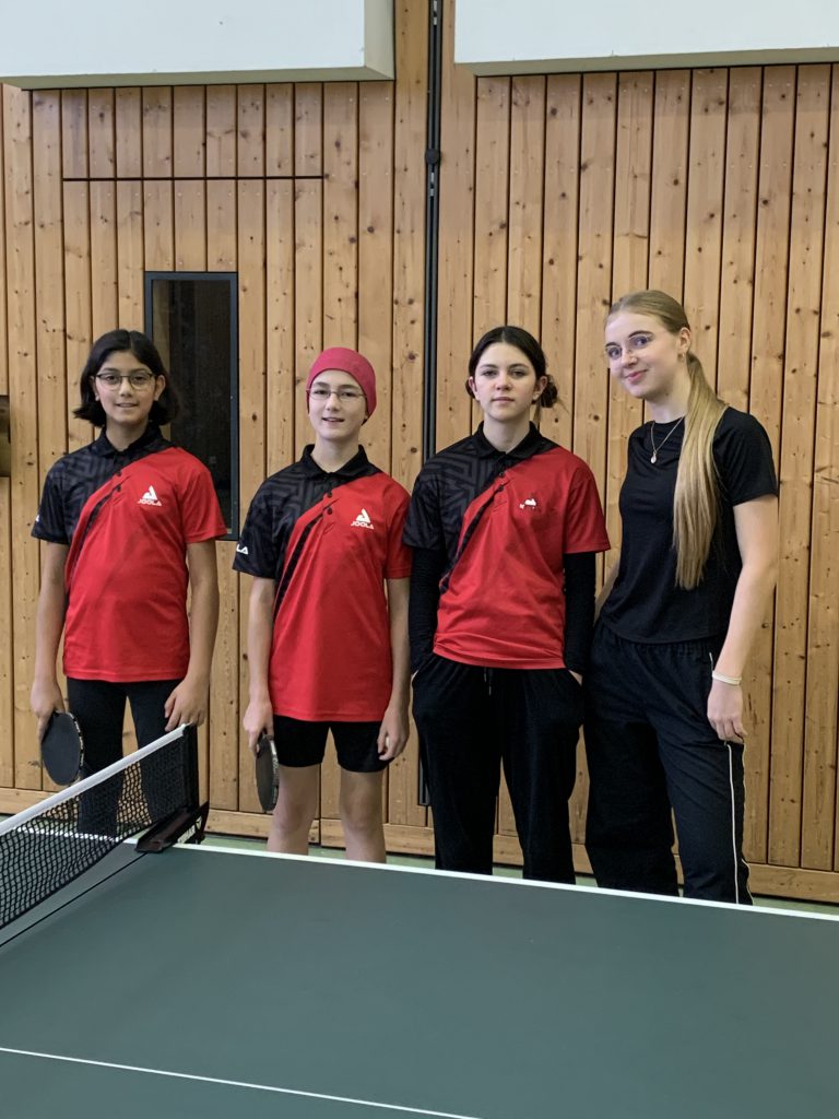Unsere “Sechste” Jugendmannschaft: vl Arya Kowshik (Ersatzspielerin aus der “Siebten”, Julia Geist, Myroslava (Mira) Zyrianova und Anna Kolianko