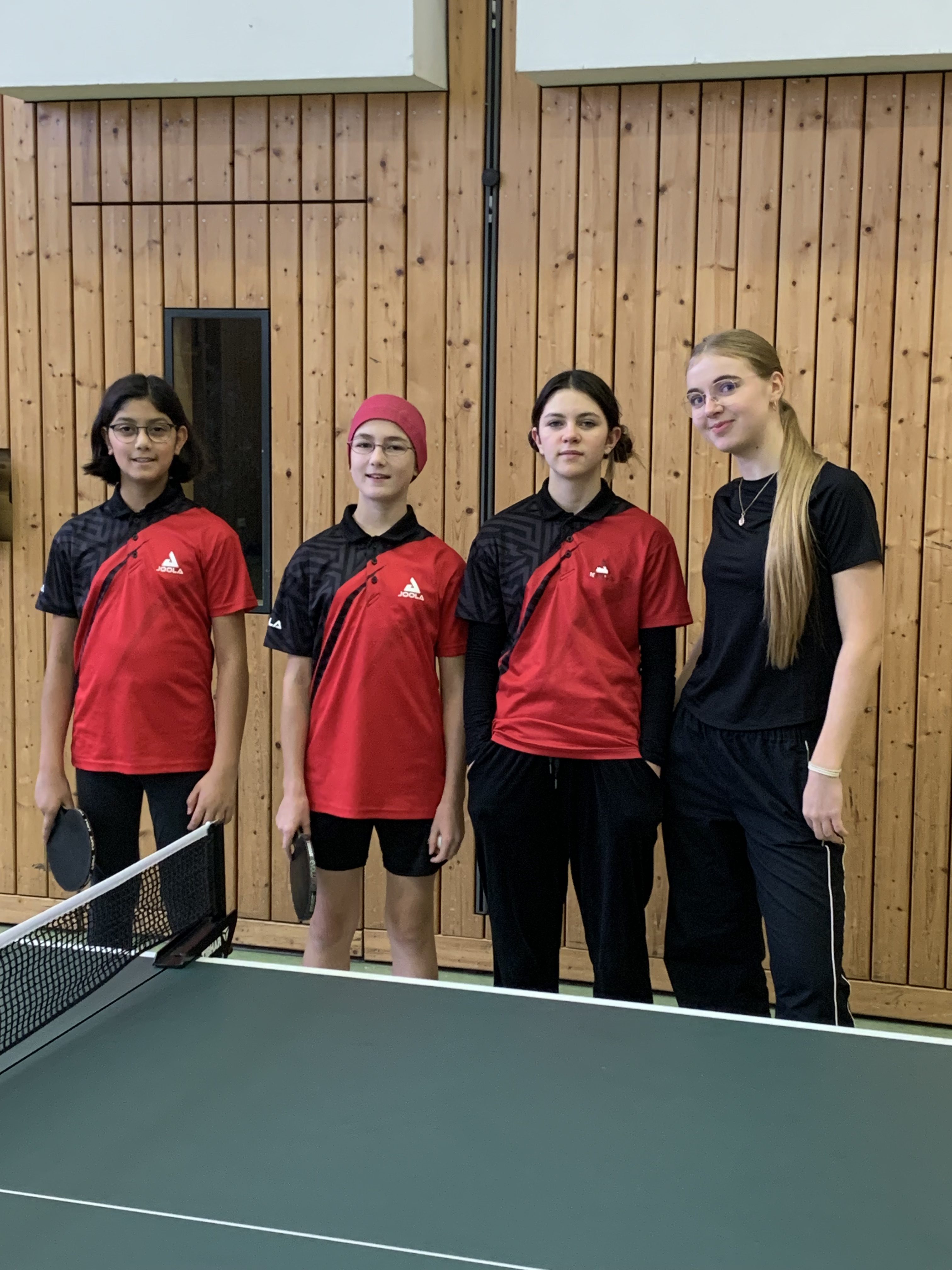 Unsere “Sechste” Jugendmannschaft: vl Arya Kowshik (Ersatzspielerin aus der “Siebten”, Julia Geist, Myroslava (Mira) Zyrianova und Anna Kolianko